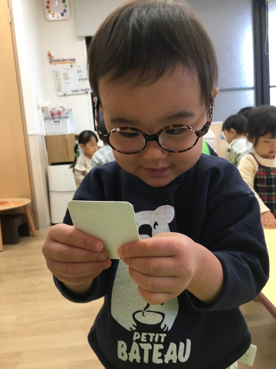 でも、言われたカードを机に置いてパチンとかるたのように取っていて、一応かるた遊びになっていました👍
