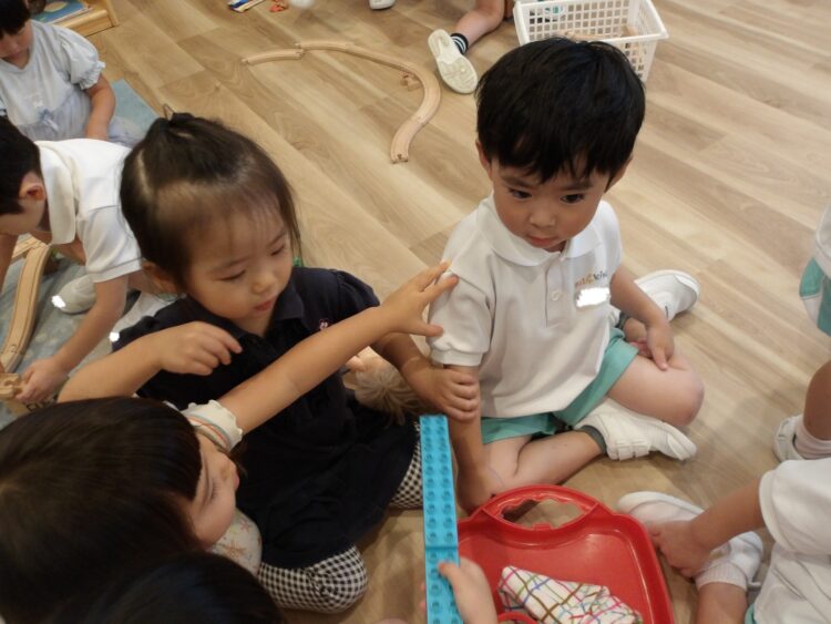 プールの水に見立てられたオーガンジーがばら撒かれると、「わ〜✨」と目を輝かせる子どもたちでした。