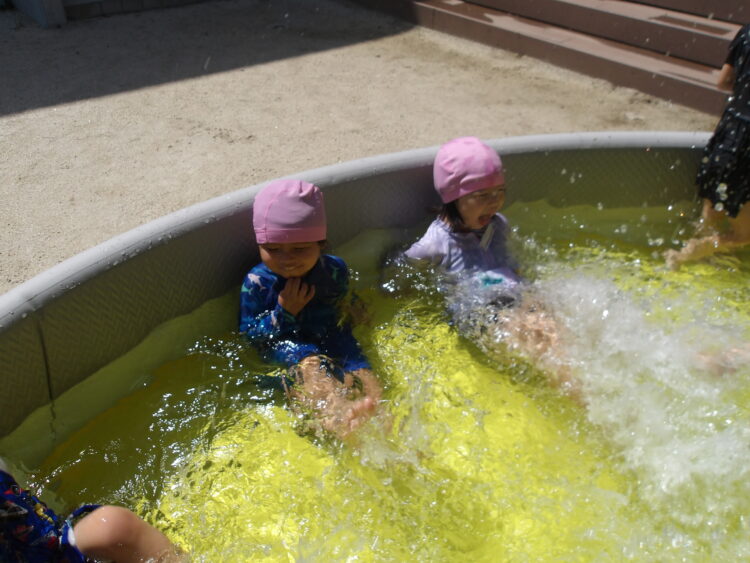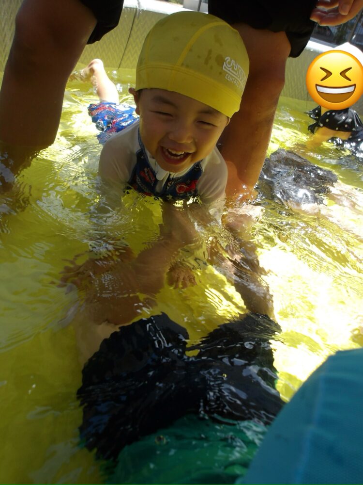 お友だちと入って、バタ足をしながら楽しんでいましたよ。