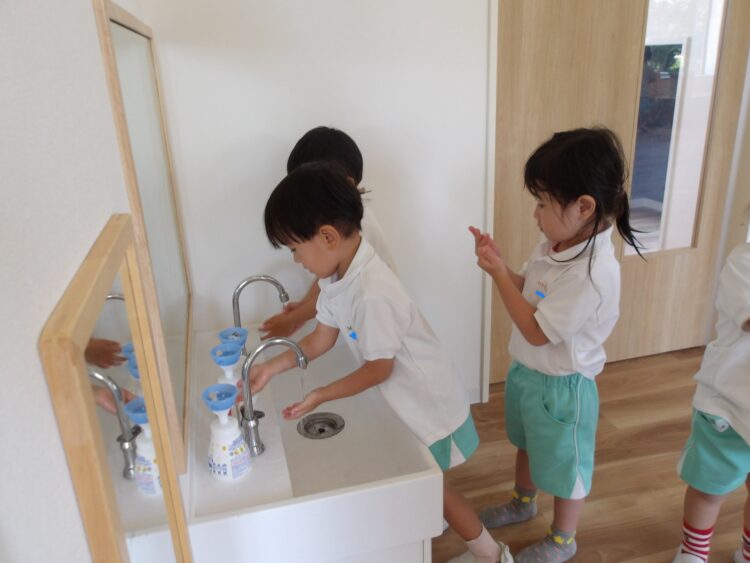プールの後は手洗い教室![]()