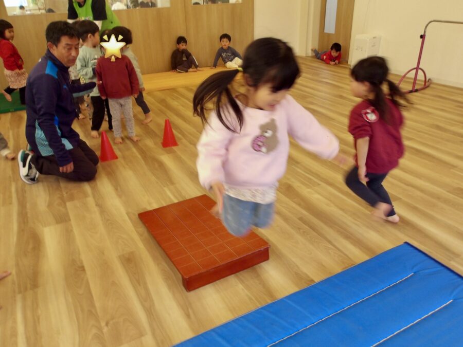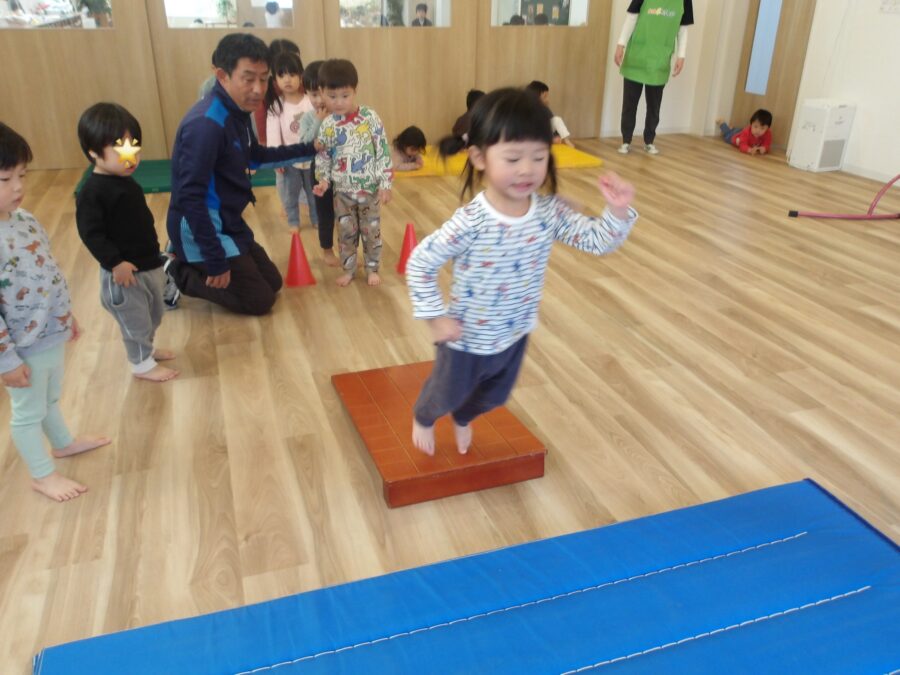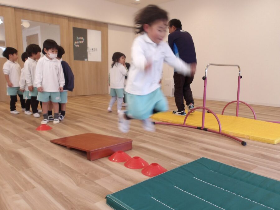 他にもジャンプしながら前に進む練習などをして、とっても上手に両足跳びをすることができました。
