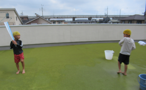 ひよこ組あひる組は園庭で遊びました。