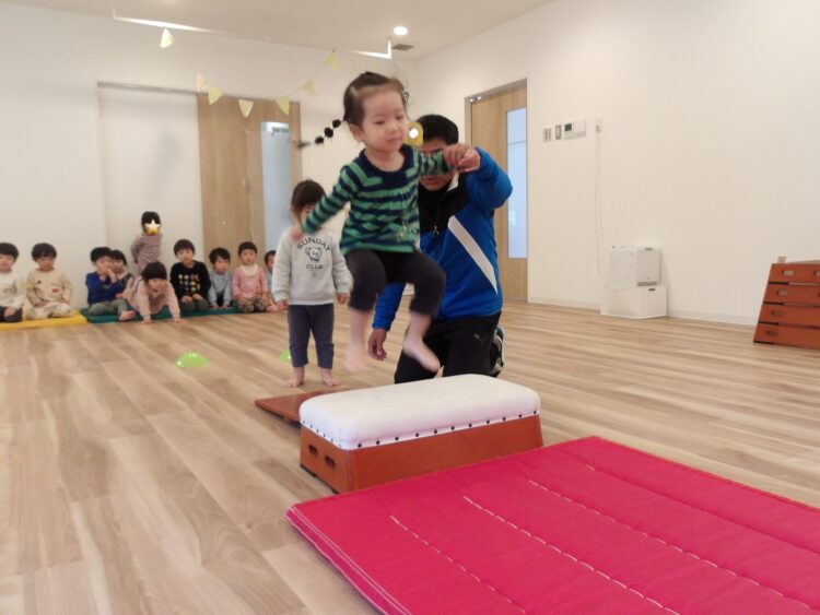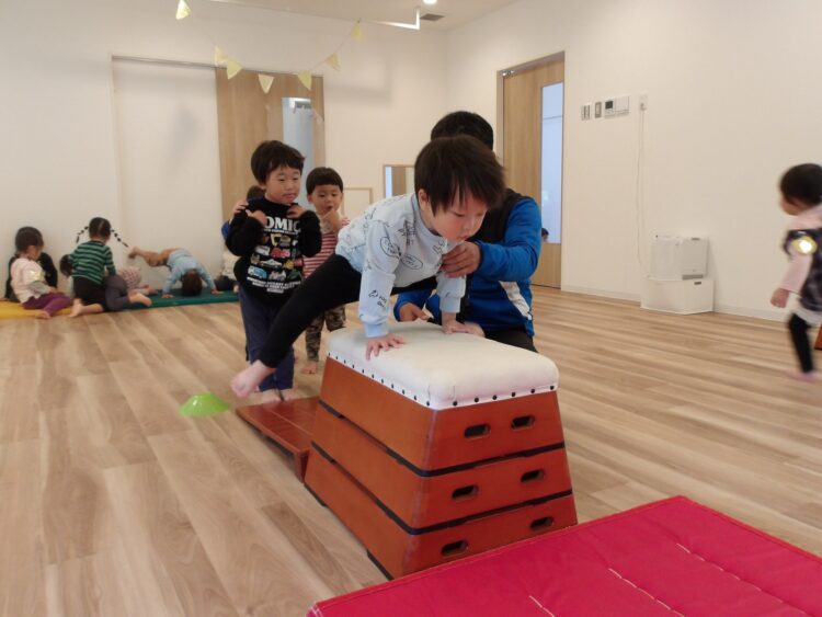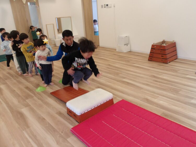 跳び箱を飛ぶ練習になるそうですよ。