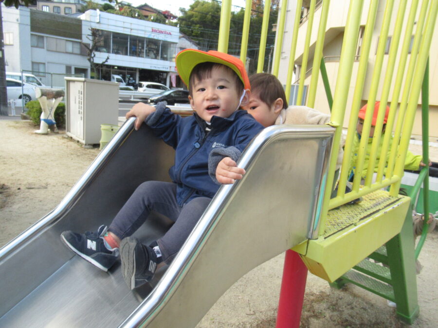 到着すると、早速滑り台で遊ぶ子どもたち🧒