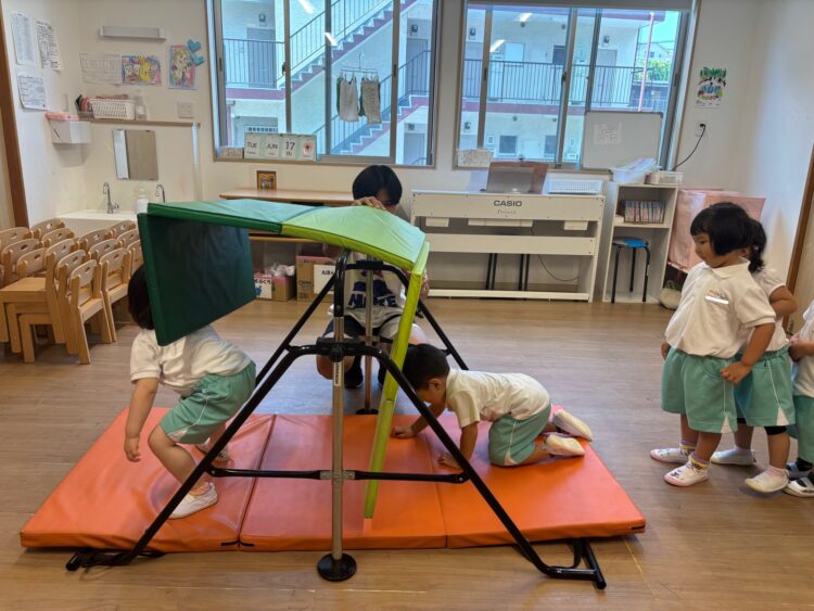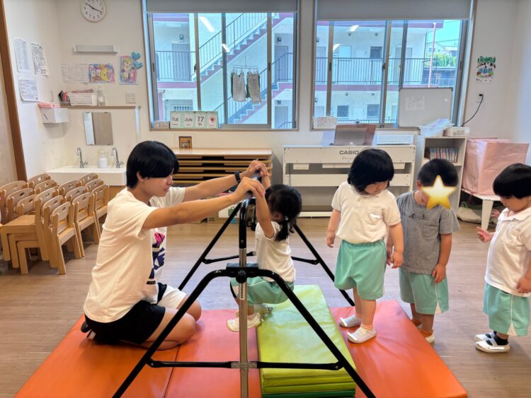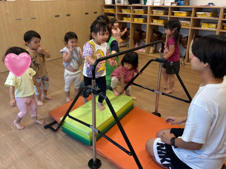 身体をたくさん使って鉄棒を楽しんでいるぱんだ組さんでした🐼👏
