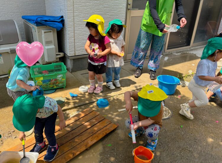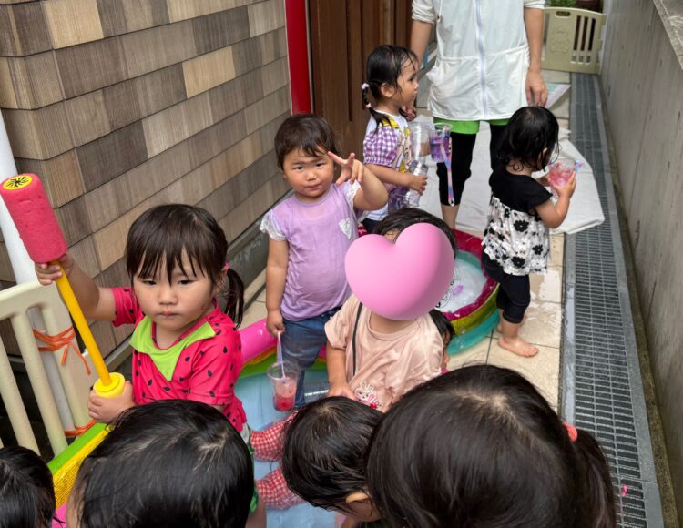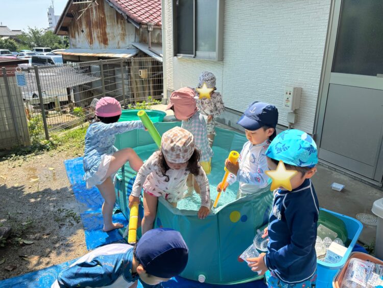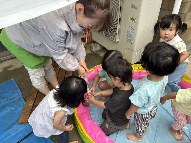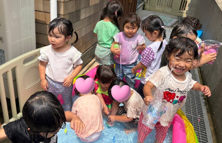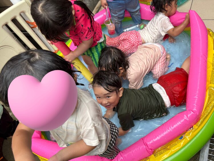 水遊びは、みんな大はしゃぎ✨「キャーキャー」言いながら元気一杯楽しめました😆