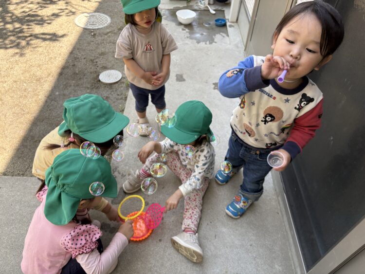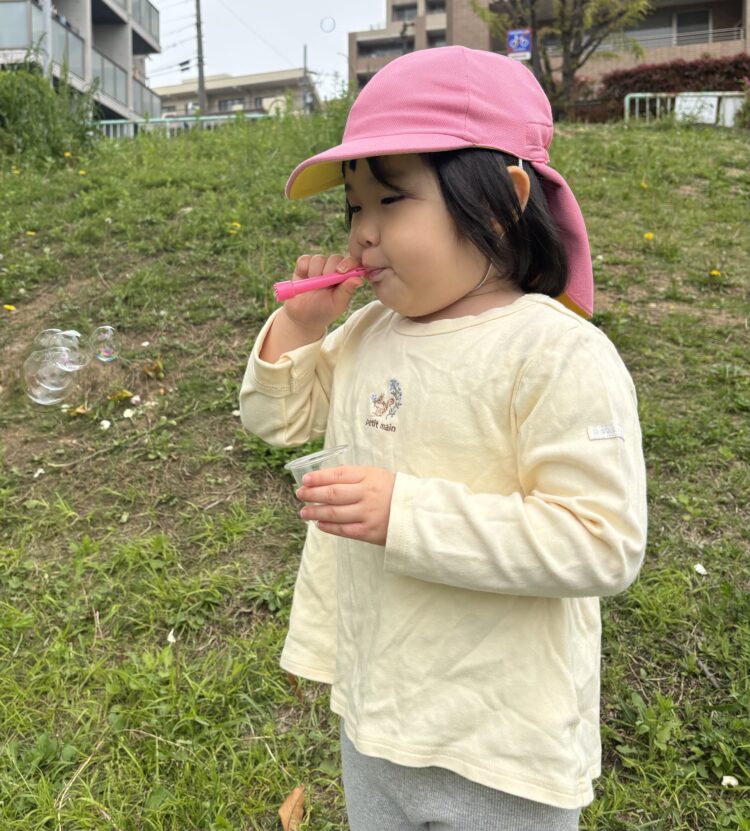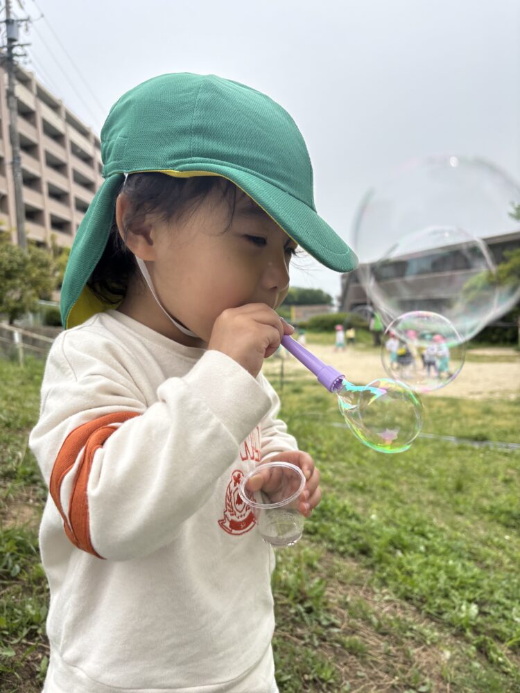 スタンプ遊びした後は、マイブームのシャボン玉遊び🎵をしてご機嫌なりすぐみさんでした😊
