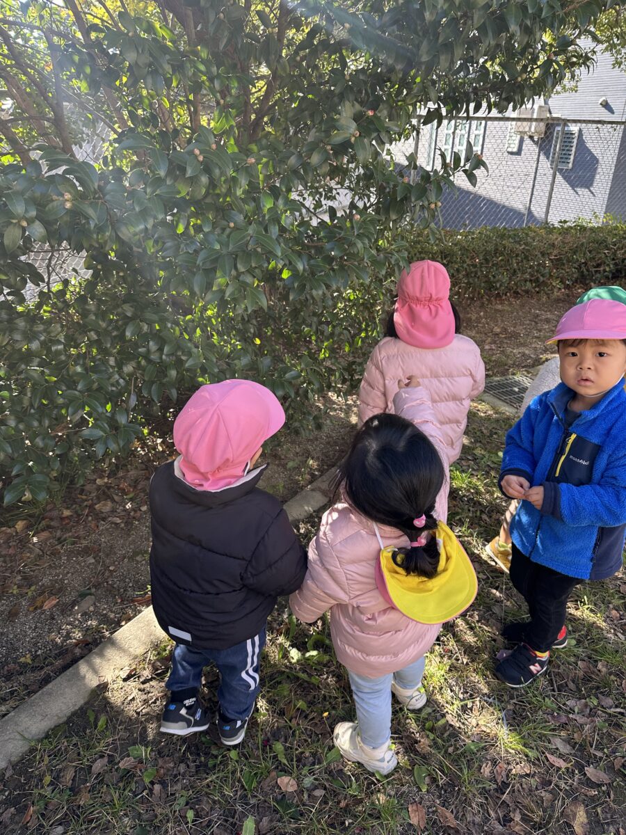 みんなで蕾を見つけたりす組さん。