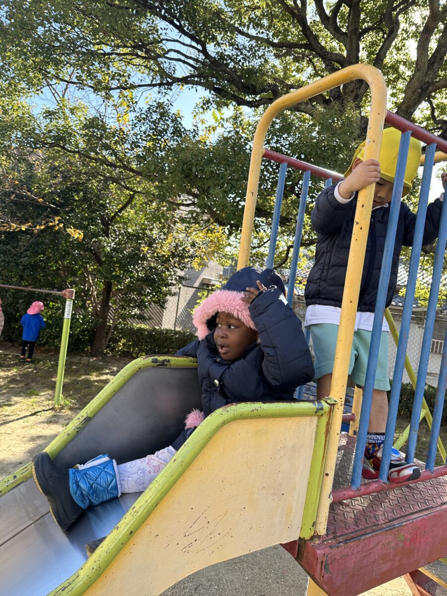 こちらでは滑り台の上から「せんせーい!」と呼んでいる子が👀