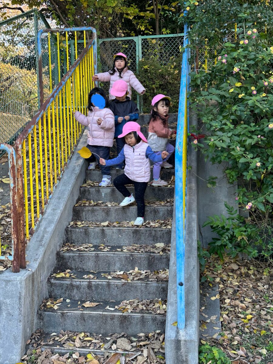 きのみや落ち葉沢山見つけて大事そうに持ち帰りました♪