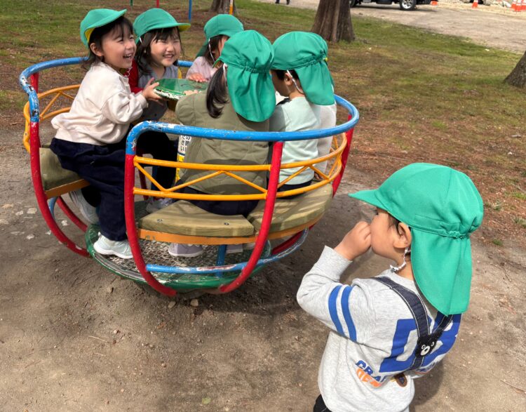 ぐるぐる回る遊具にみんなで乗って楽しんだりしました🩷
