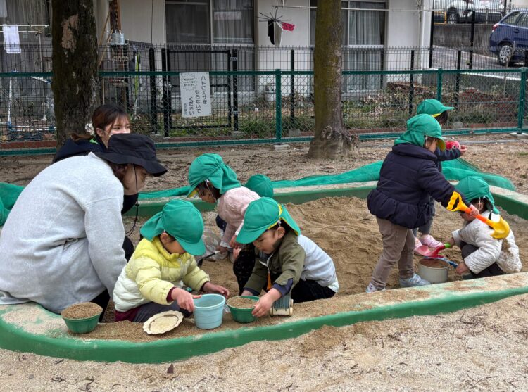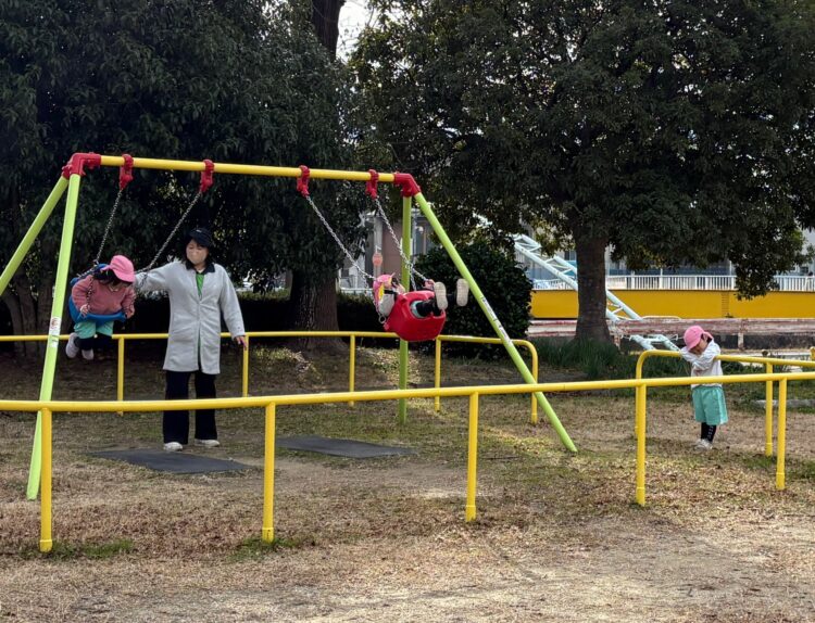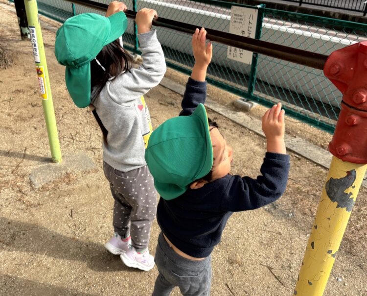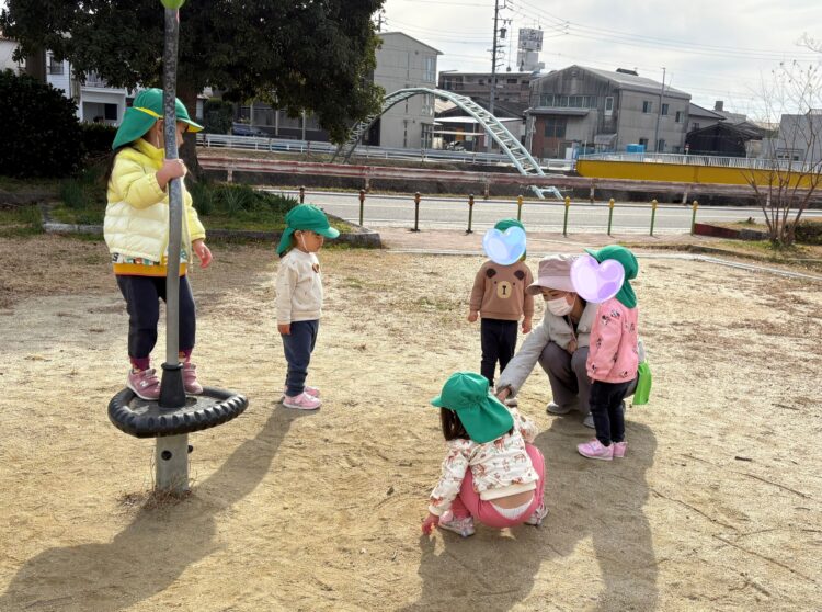 今日は、大坪公園に行きました。寒い中みんな元気いっぱいで、走り回ったり、ブランコや滑り台🛝を楽しみました✨