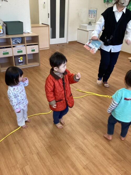 「手裏剣シュッ!」体操の先生が手裏剣を投げる真似をすると