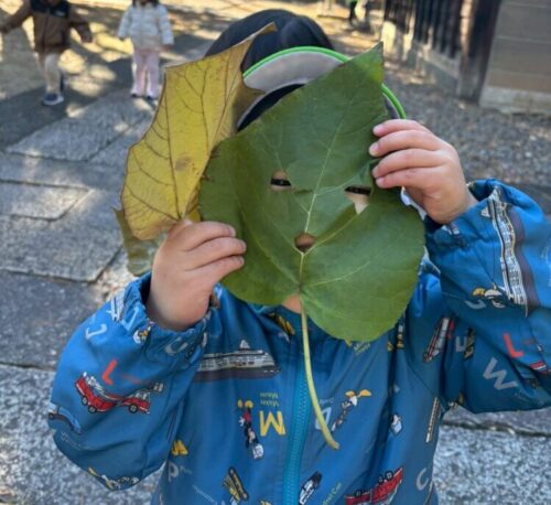 いろんな枯葉を踏んで楽しみながら歩く姿が見られました♡