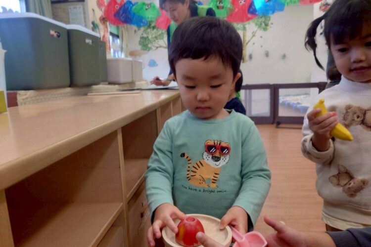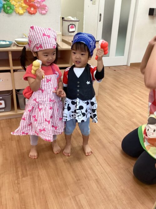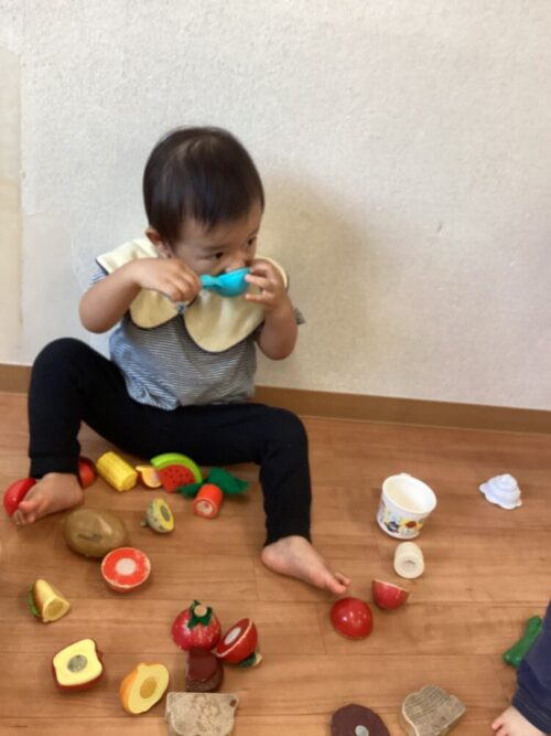 今日は雨だったので室内でおままごとをしました。