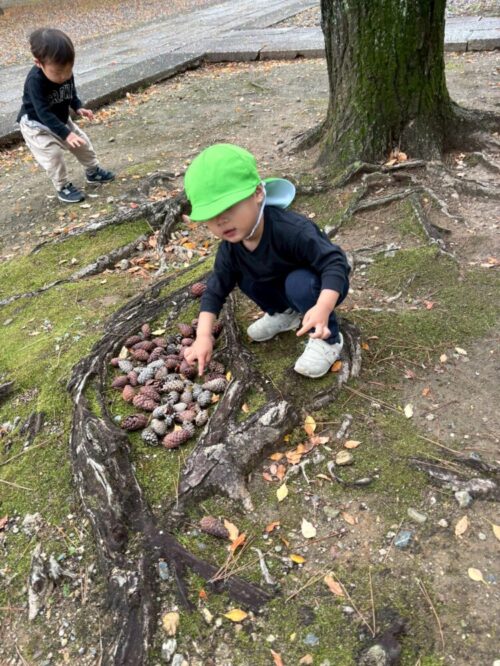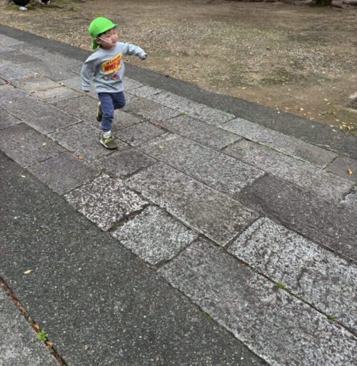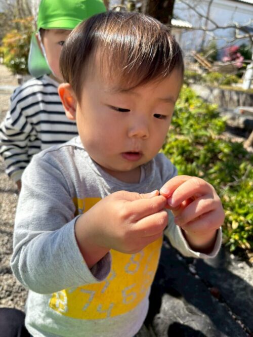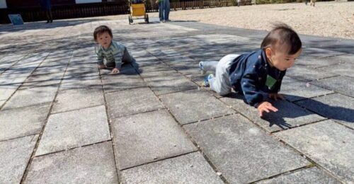 新入園児さんがお外でハイハイしていると