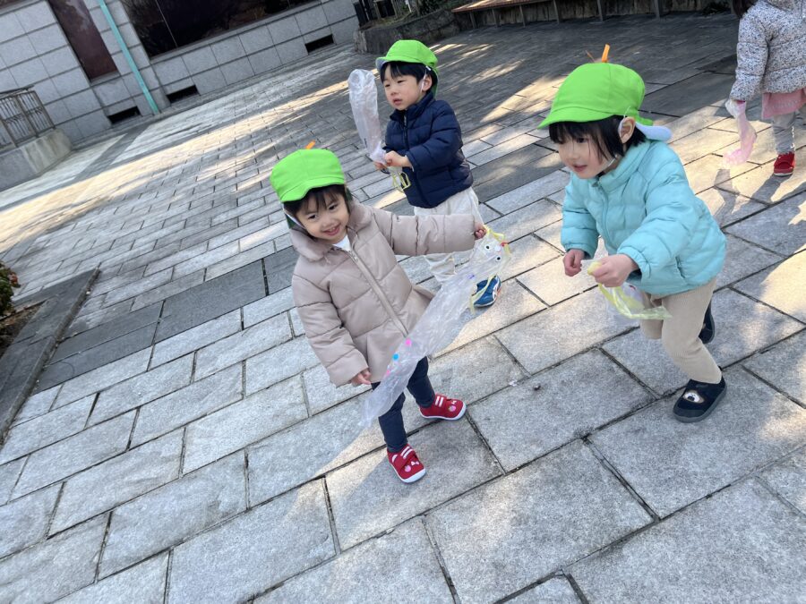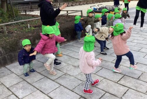 うさぎ組さんとひよこ組さんは近くの広場へお散歩に行きました♪