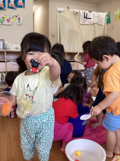 お部屋の中で水遊びをして過ごしましたよ✳︎