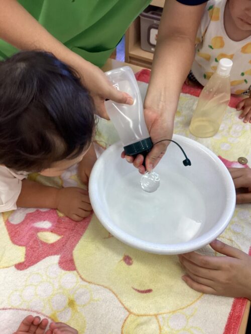 ぷにぷにの水まんじゅうのような水の玉のできあがり!