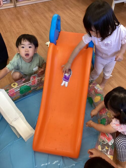 滑り台スライダーを使用して、お人形を滑らせます✨