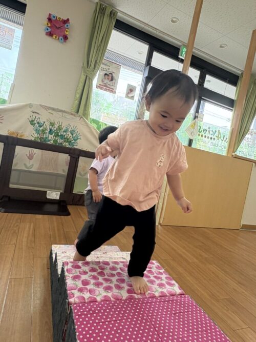 階段を登ることはお手のもの!降りることはまだ少し怖いみたいで先生と手を繋いでできましたよ✨
