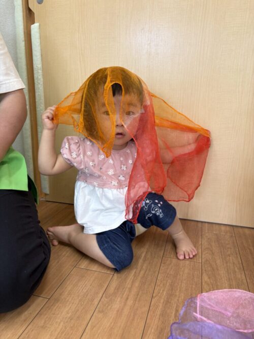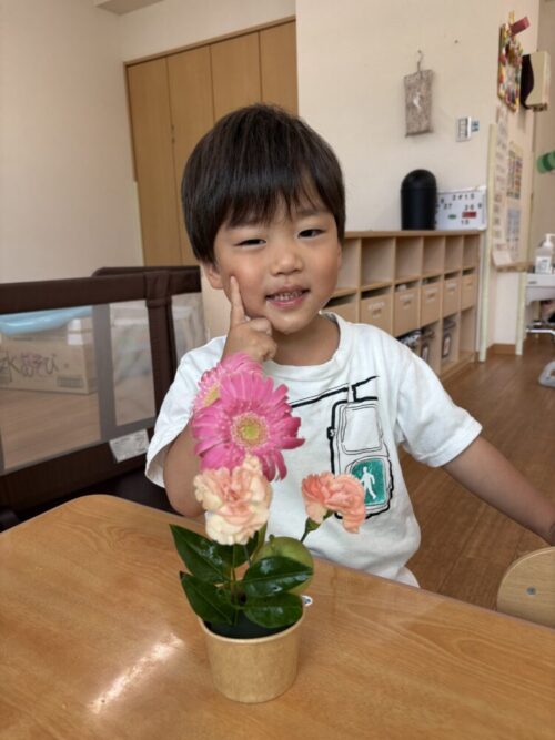 かわいいお花がたくさんあって「ピンク!」「フワフワ〜」などと言っている子どもたちでした😊