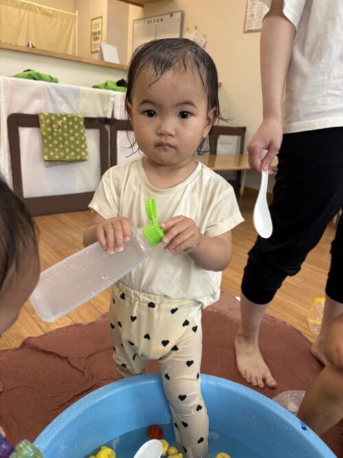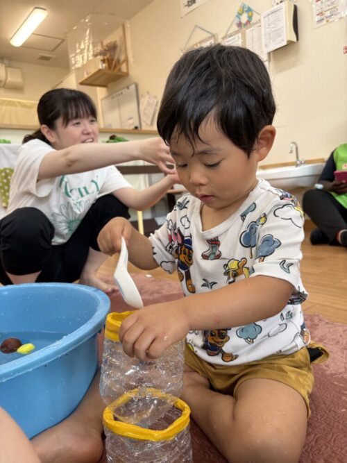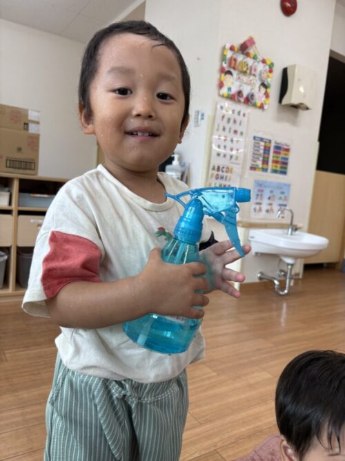 かき氷のシロップの空容器に水を入れて、水鉄砲のようにして遊ぶ姿も見られましたよ😊