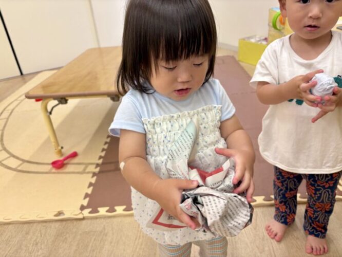 今日からクラスに冷蔵庫がやってきたので、皆んなで新聞紙で卵を作りました🥚