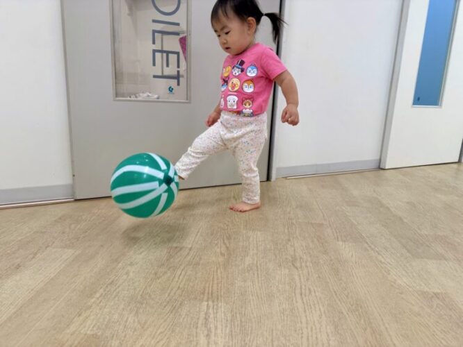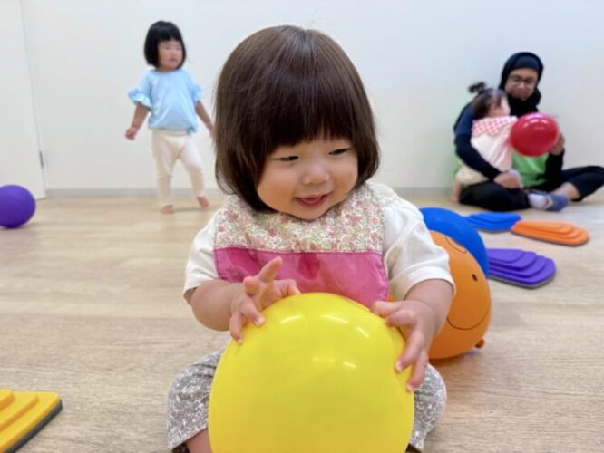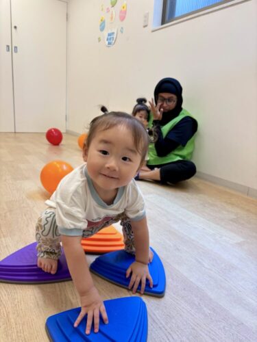 その頃隣の部屋では風船やバランス台を出して運動遊び🎈