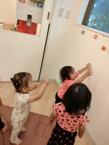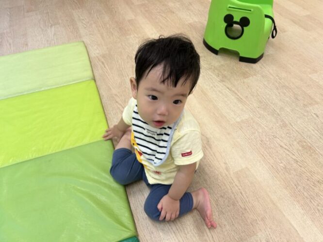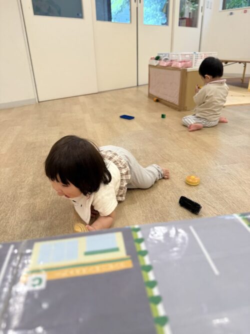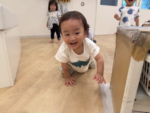 朝からお友だちやひよこ組と一緒にハイハイで室内をぐるぐる探検していました