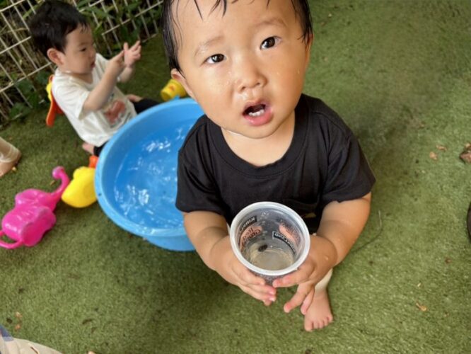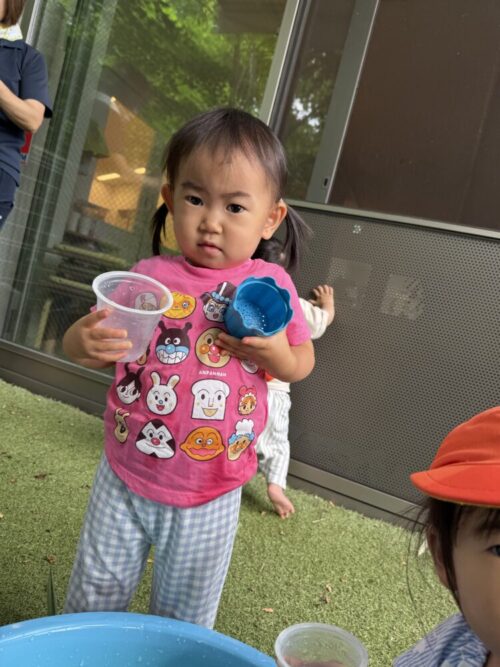 本日も水遊びをしておりませんので、水遊びセットは保育園の方に置いて帰っていただいて大丈夫です!ご準備の方ありがとうございます😌子どもたちも楽しみにしている水遊び、早くお天気が良くなって水遊びを存分に楽しんで行きたいです!
