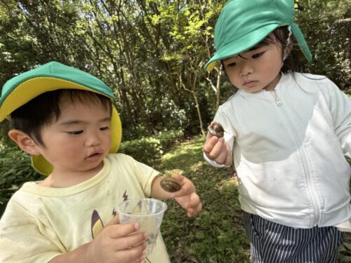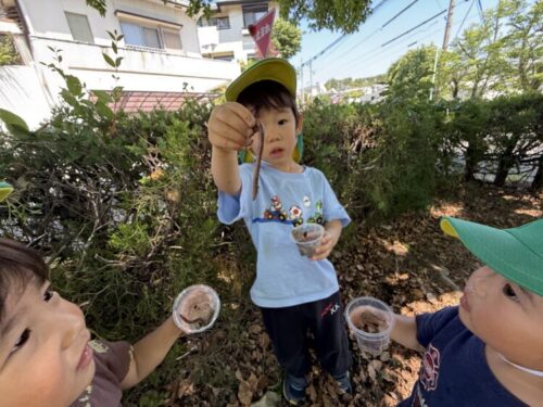 何して遊ぶか聞いてみると「ミミズ❗️」「カタツムリ‼️」と元気なお返事☺️