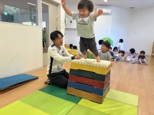 柱のあいだから「先生一緒に遊ぼ‼️」と大きな声