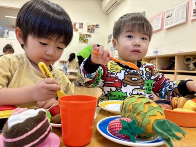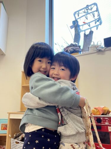 おままごとコーナーでお友達同士ハグしている子を発見💡