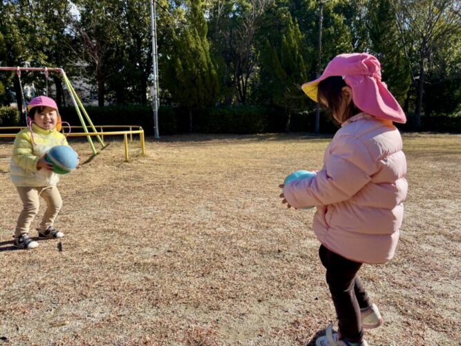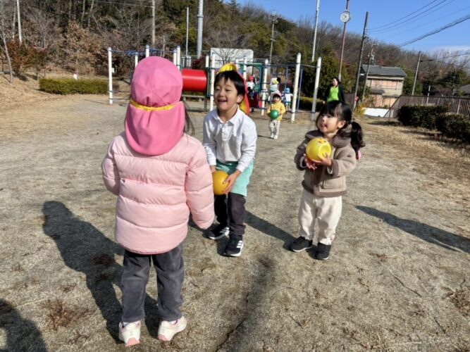 落ち葉遊びや、ボール遊びで楽しむ子どもたち🥎
