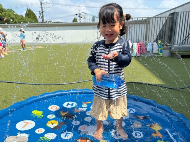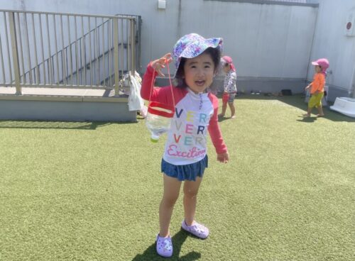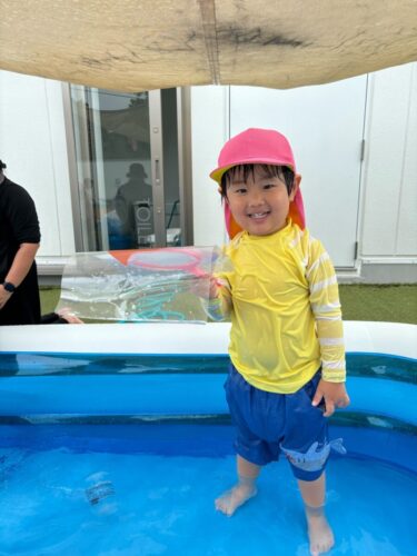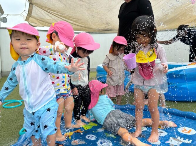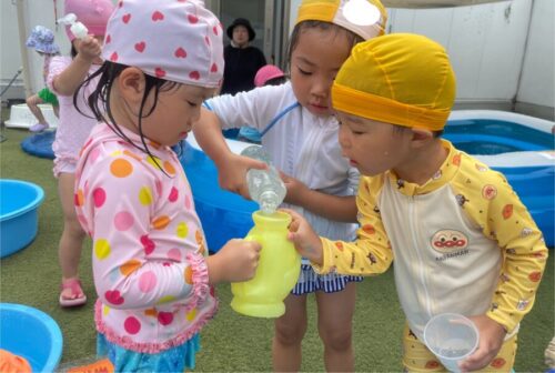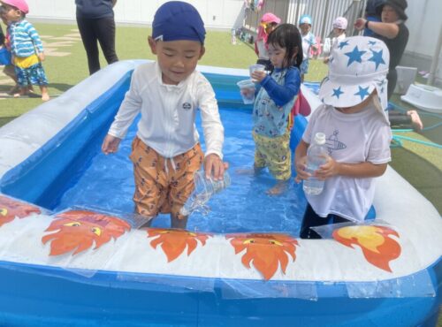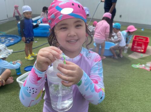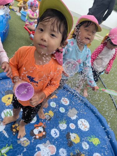 水遊びでは先月の誕生会の実験を試している子もいました![]()