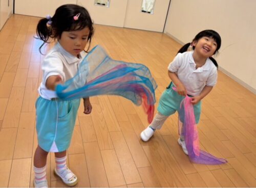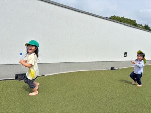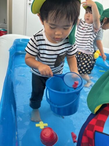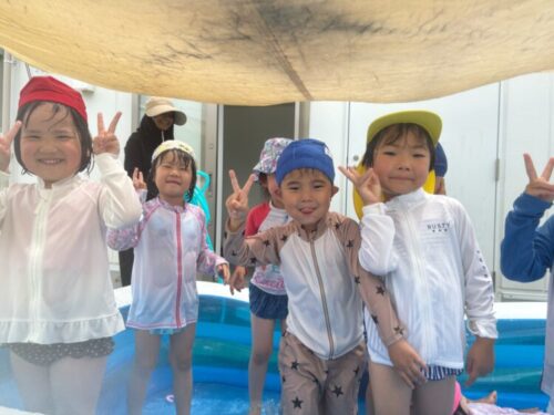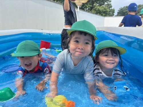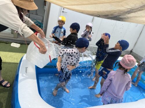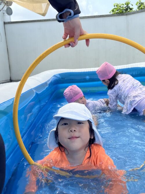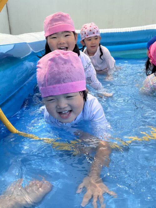きりん組、くま組は勢いよくバタ足をしたり、宝探しをしたりしてプール遊びを楽しんでいました![]()