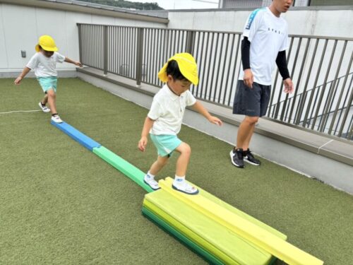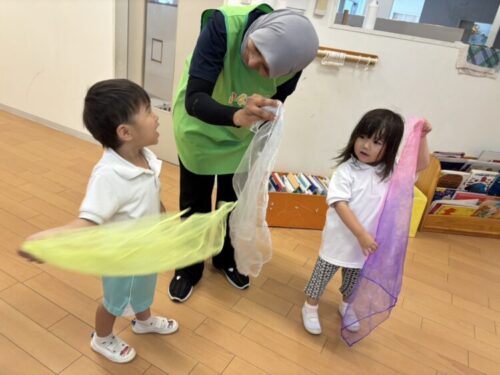 くま・きりんさんはばた足競争をしたり、おもちゃ取り競争をしたりして大盛り上がりでしたよ![]()