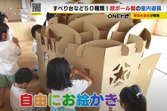 東海テレビ『ニュースONE』で当園で導入しているダンボール製の室内遊具が放映されました。