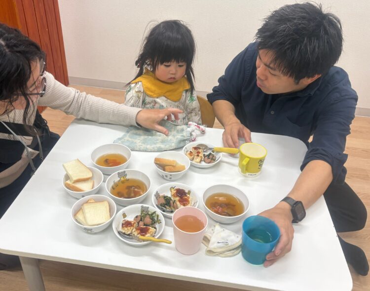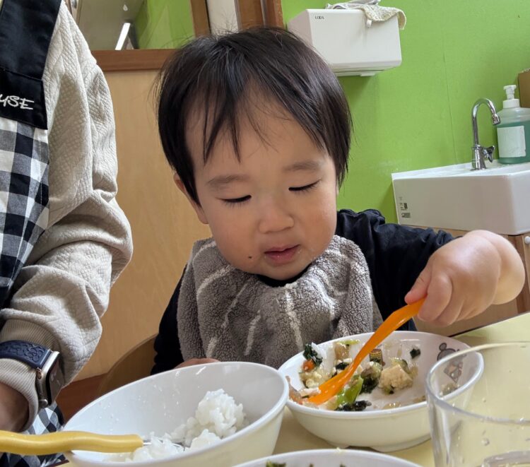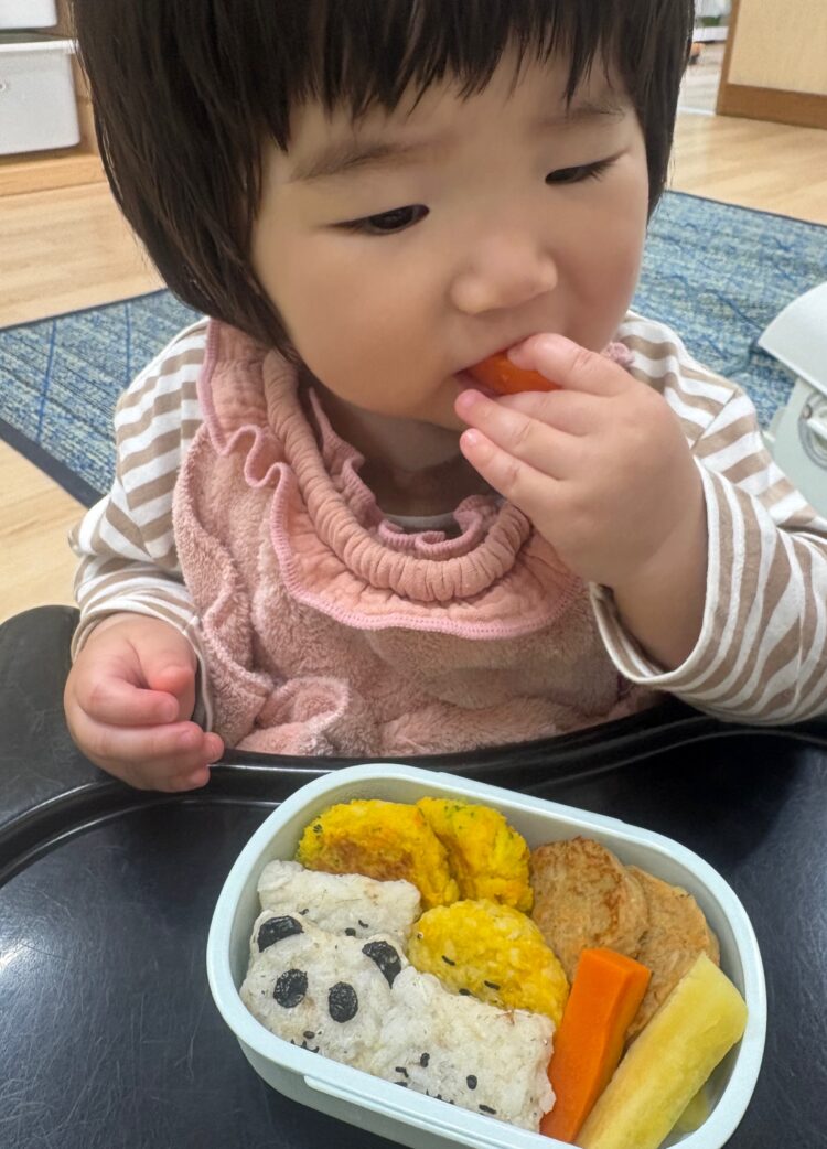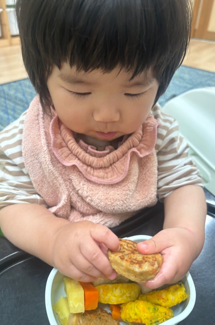 手づかみで上手に食べようとする姿や、嬉しそうに口に運ぶ様子がとても微笑ましく、あたたかい気持ちになるひとときでした