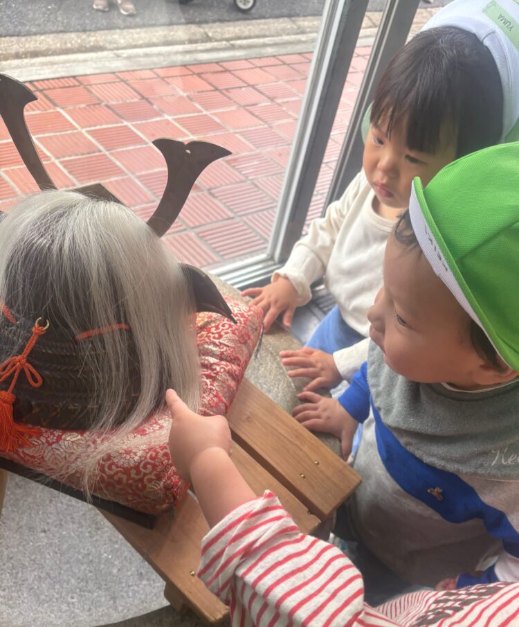 お米屋さんに飾られている兜を見たりしながら、元気に歩いていました🎏