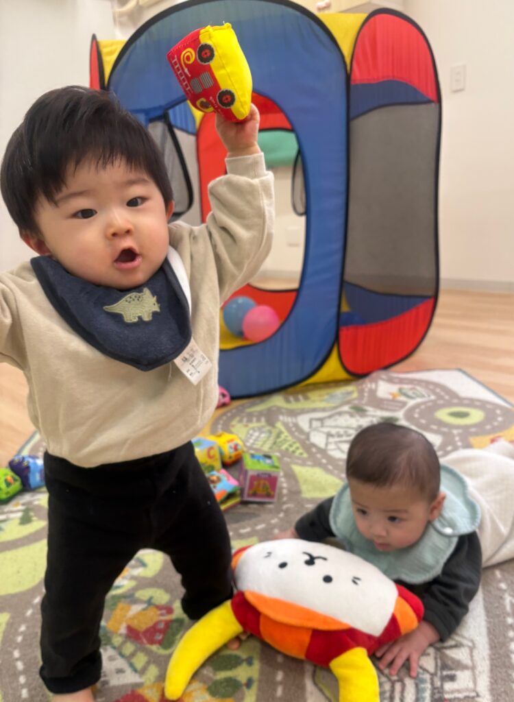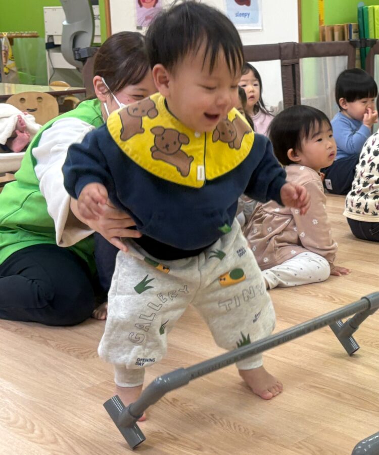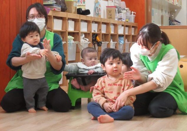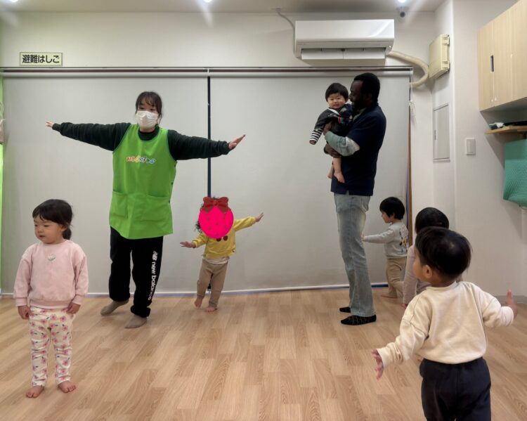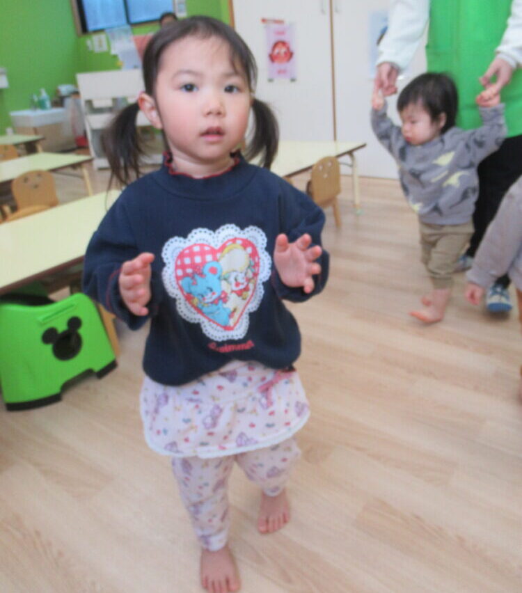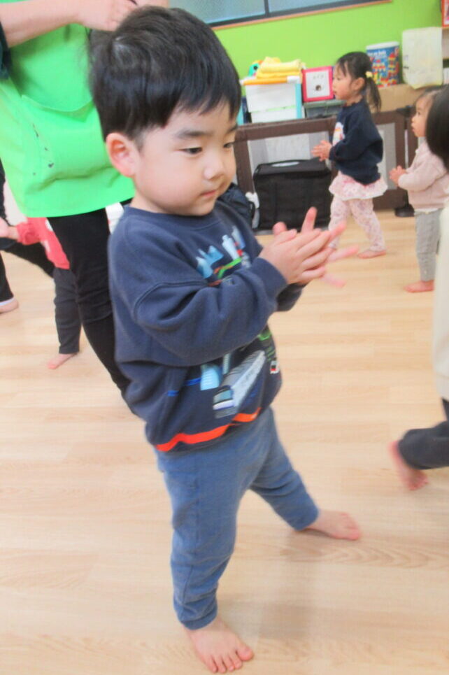 手をたたく・足踏み・ジャンプなど簡単な動きを楽しみます🎵