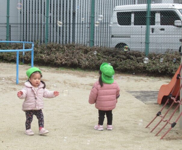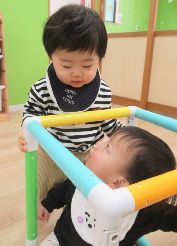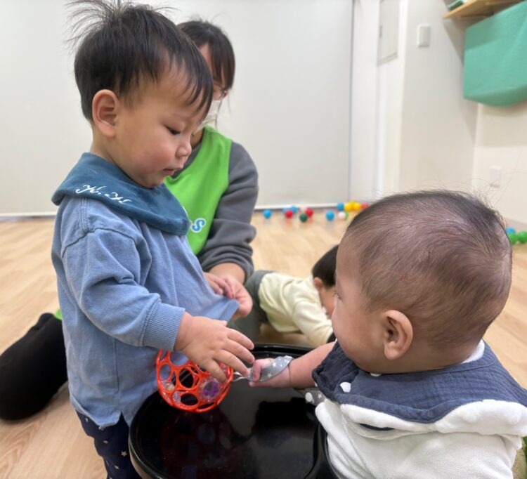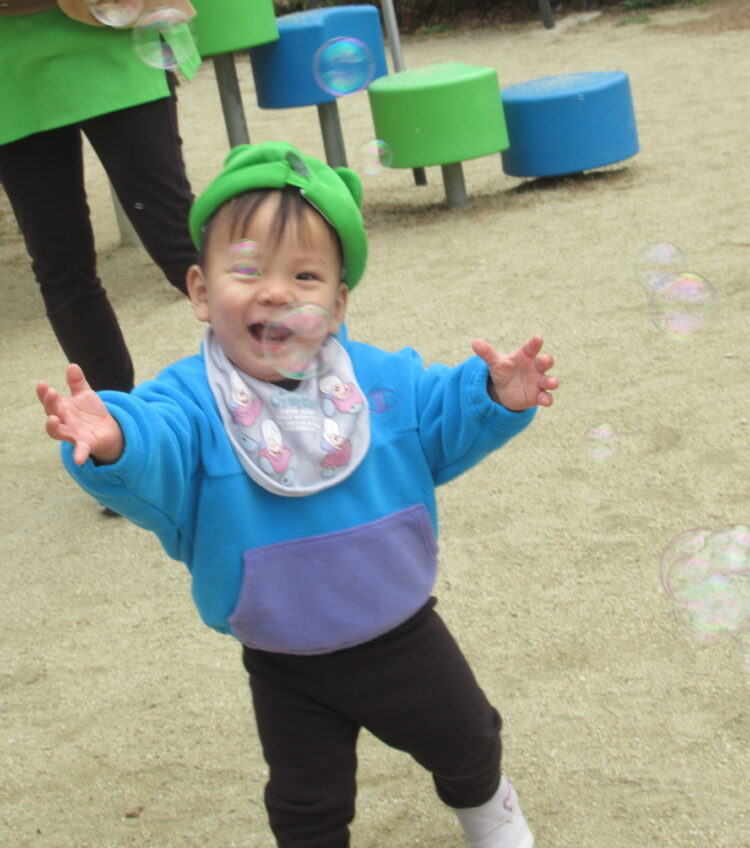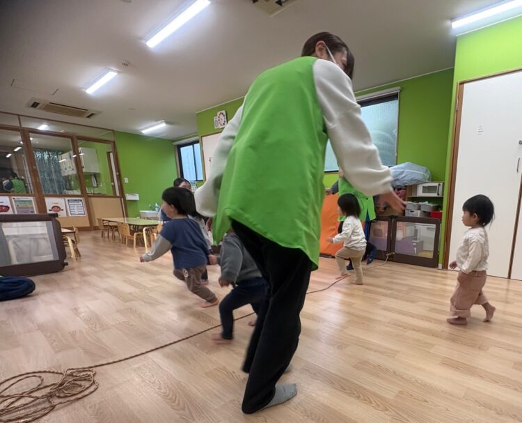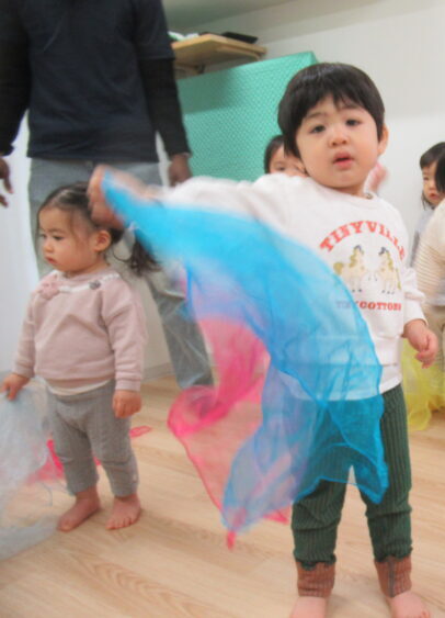 「できるかな?」と不安そうな子もいましたが、先生が手をつないで一緒にやったり、少しずつ挑戦させてくれるので、だんだん自信がついてきたみたい