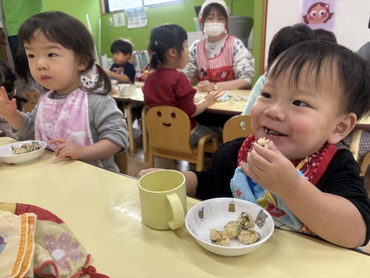今日は、健康に良い食べ物を楽しみながら食べることができて、みんなの笑顔がいっぱいでした🍙