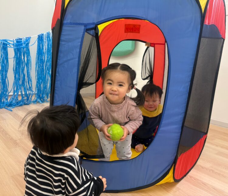 トンネルに少し怖がっていた子も、先生が「一緒にくぐってみよう!」と手を差し伸べると、勇気を出してくぐることができました。👏✨