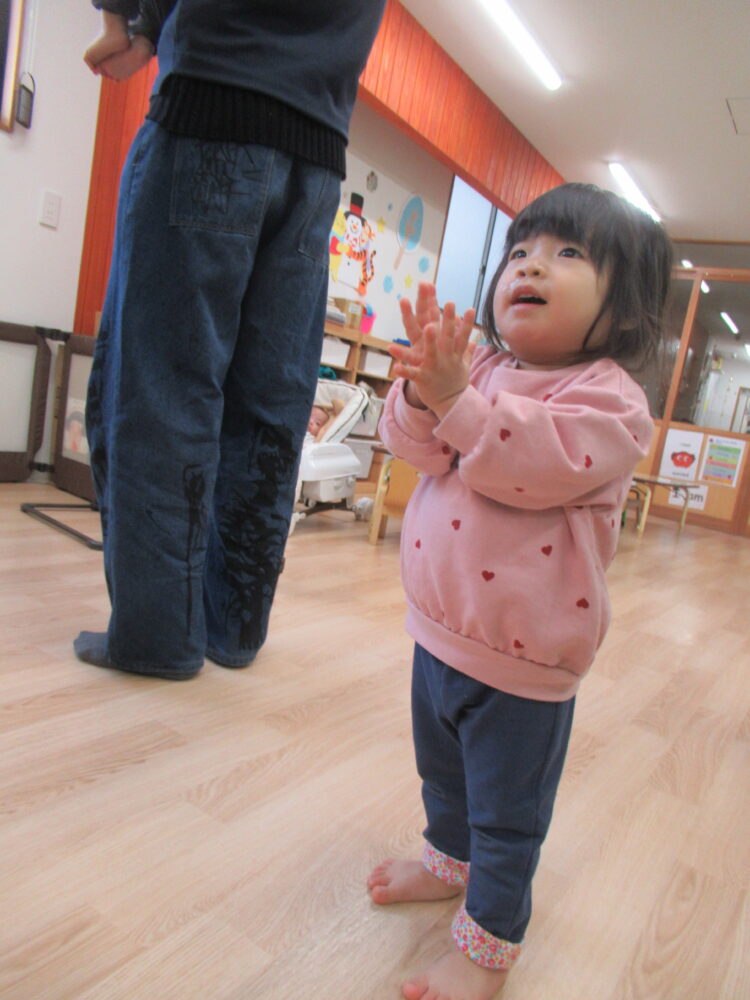 今回で3回目となり、少しずつ活動の流れにも慣れ、ピアノが流れると自然と体を動かそうとする姿が増えてきました。