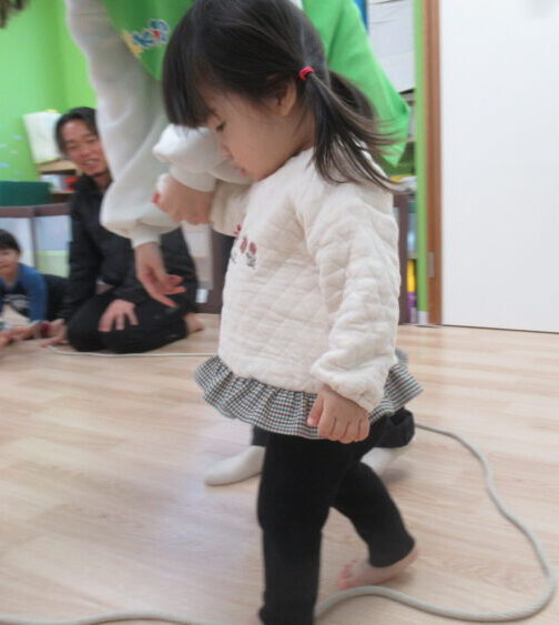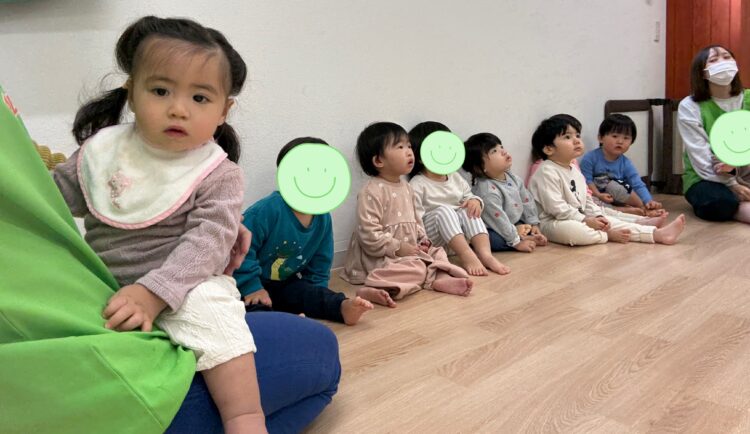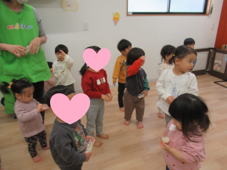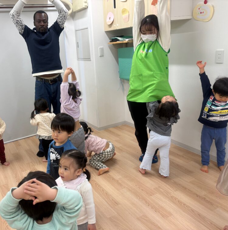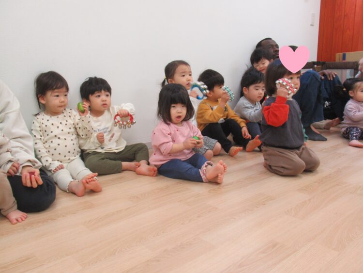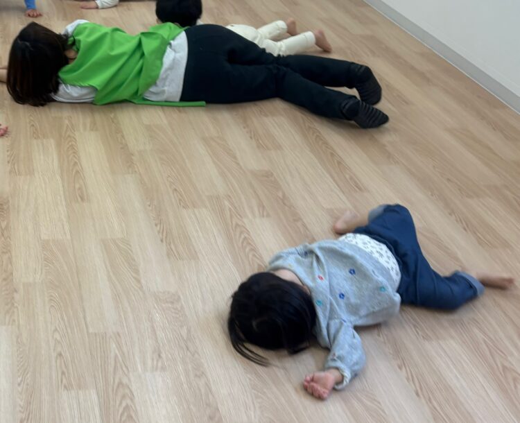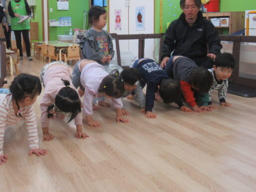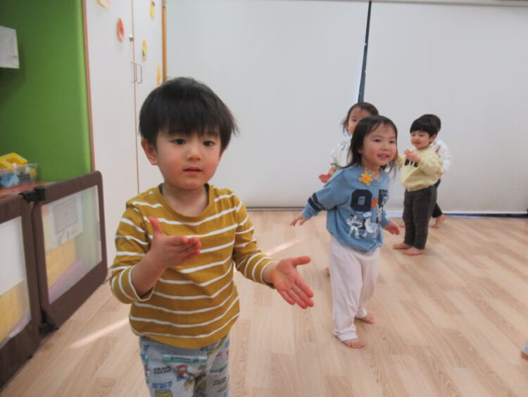 2歳児クラスでは、保育士が行うリトミックを行いました。