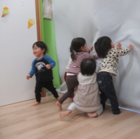 ピアノや音楽に合わせて歩いたり止まったり、高い音・低い音を聞き分けて表現するなど、音をよく聞きながら楽しむ様子が見られました。