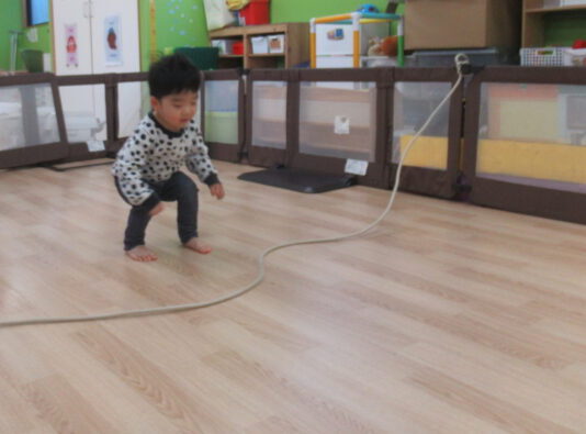 ハイハイや歩行ができるお友だちは、保育士と一緒に公園内をゆっくり探索![]()
