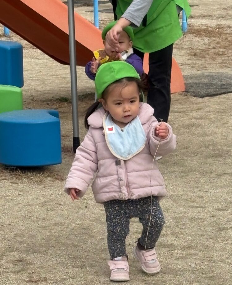 太陽の光を浴びながら、冬の自然に触れる時間を楽しみました。寒い季節でも、天気の良い日には戸外に出て、外の空気や季節の変化を感じられるようにしていきたいと思います🍂